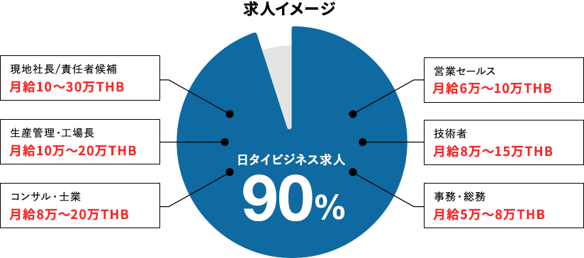 「タイ⇔日本」ビジネスに特化しているため、タイ勤務や日本勤務の求人が90%以上。他国勤務の求人に煩わされることがありません。